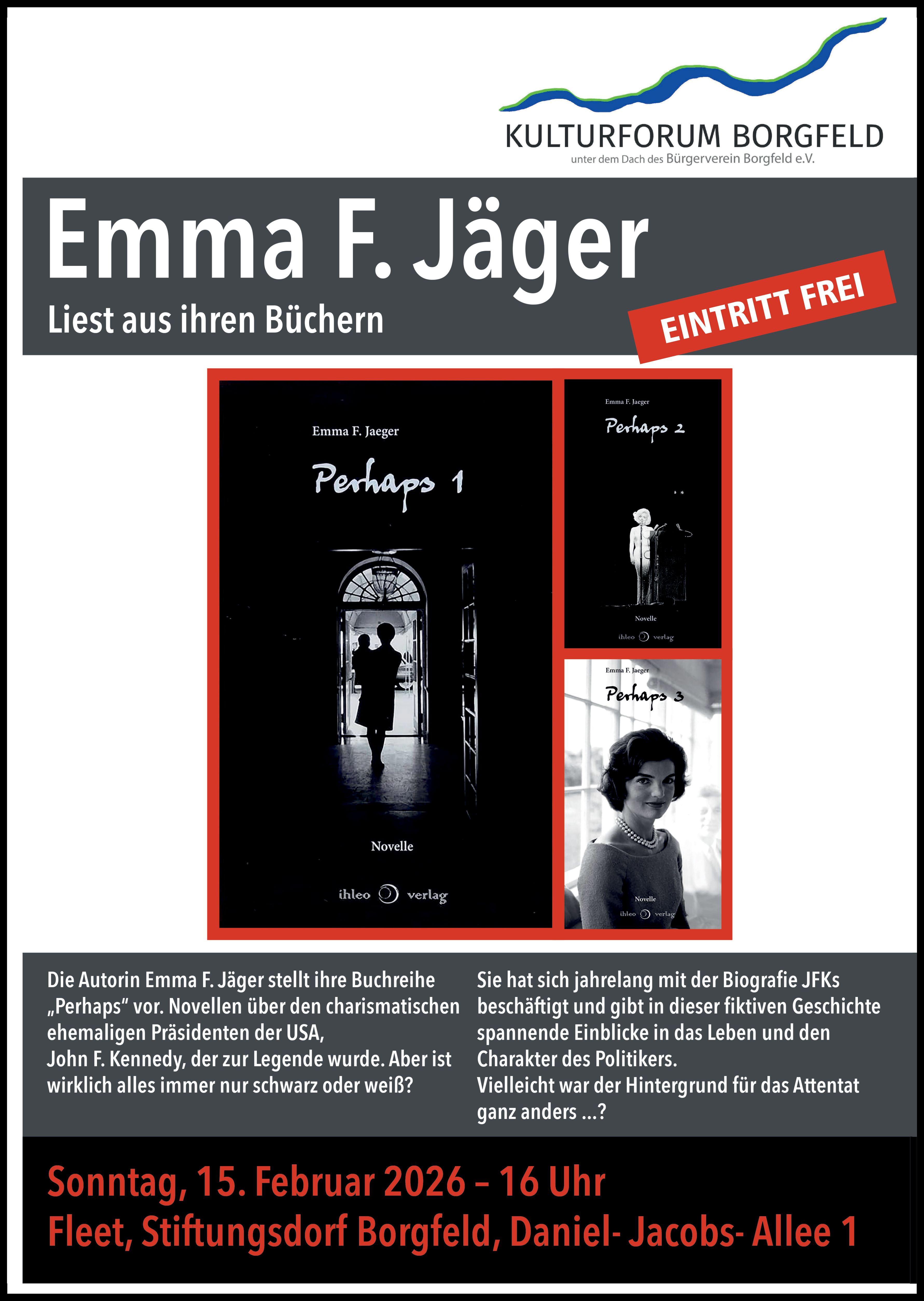 Die Autorin Emma F. Jäger stellt ihre Buchreihe „Perhaps" vor. Novellen über den charismatischen ehemaligen Präsidenten der USA, John F. Kennedy. Der zur Legende wurde. Aber ist wirklich alles immer nur schwarz oder weiß ...